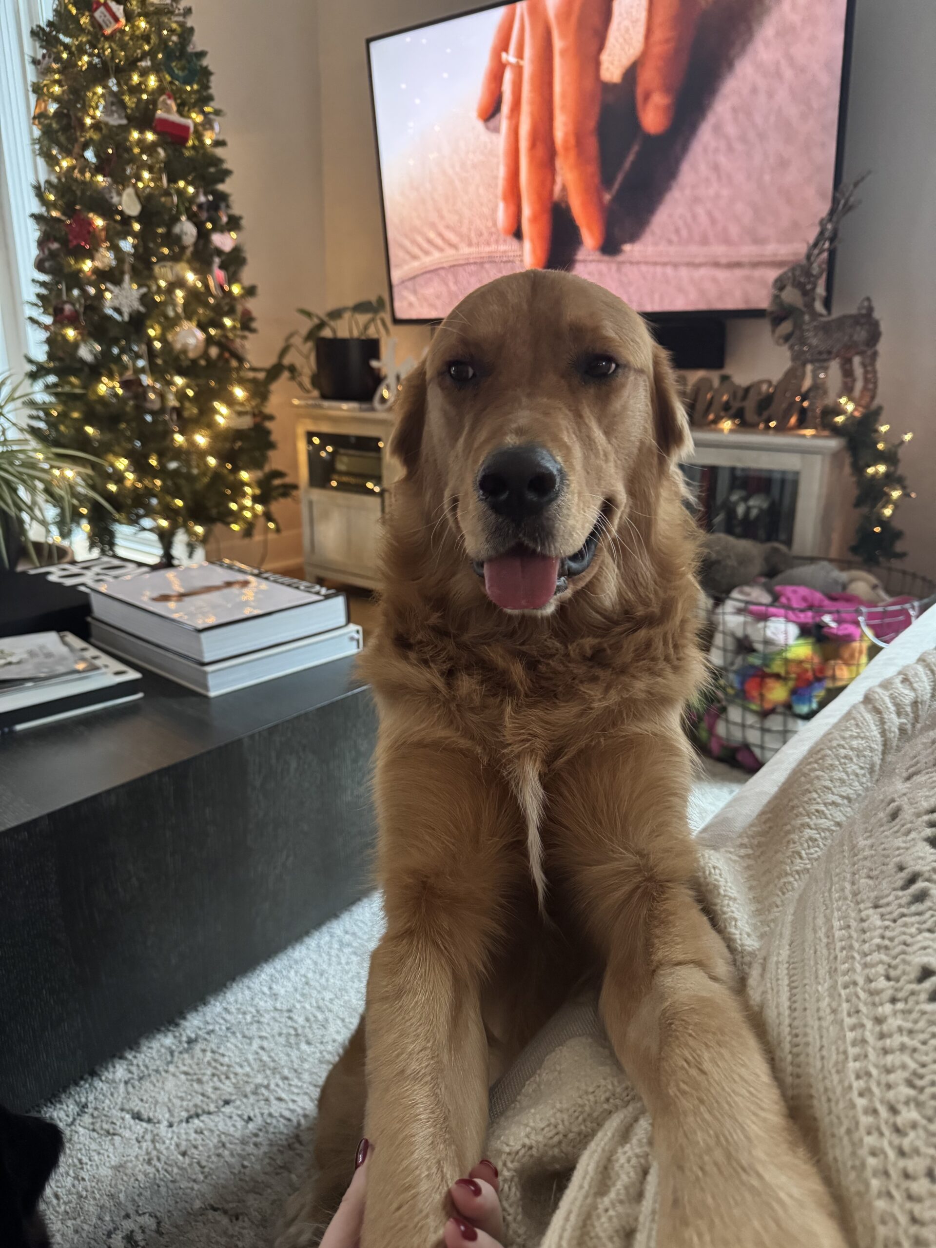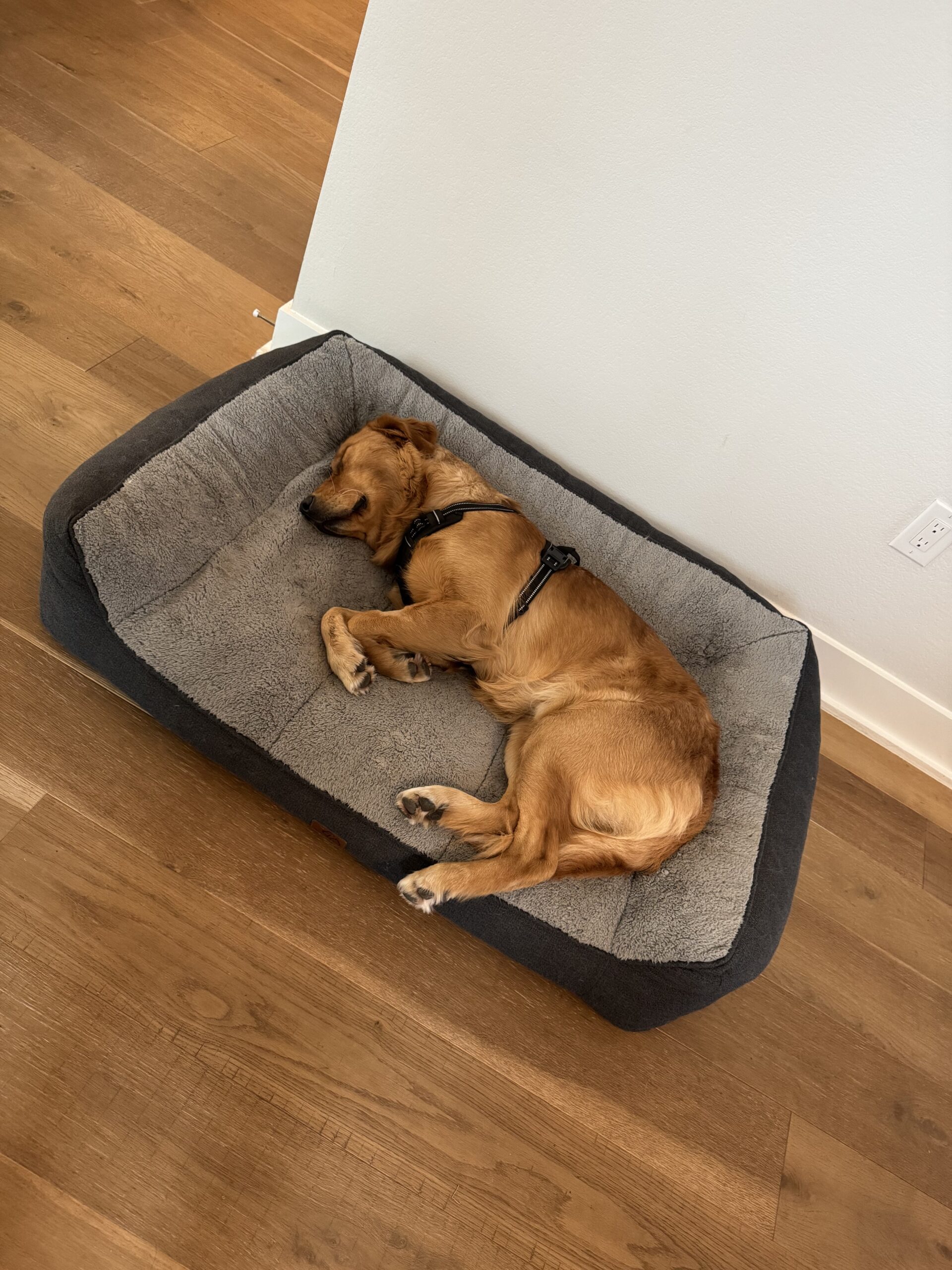 Doc is a good eater and takes treats gently most of the time. He will fetch and bring it back, but would rather play tug of war than drop it. He doesn’t jump on the furniture, but will gently put his paw next to you when you are sitting on the couch – just to let you know he is nearby and loving you. He gets the zoomies now and then and excitedly digs on his bed, but he is also just as happy to sit with you and quietly watch TV.