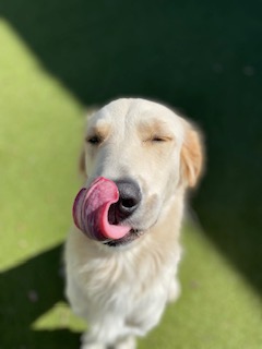 Meet GRR’s Lily, an affectionate young Golden Retriever with a big personality. Lily can be a bit rambunctious at times, but she settles down nicely once the initial excitement wears off. Lily loves being near her people, enjoys cuddles, and happily carries around her favorite stuffed toys. She’s well-behaved indoors and is very people-oriented however is an opportunist and will chew inappropriate things if she is not appropriately supervised. She is still very much pippy-like. She may enjoy having a dog companion. This girl is learning to retrieve and is curious about everything. She’s playful, curious, and always ready to explore. Lily is working on basic commands such as sit, stay, give, and improving her leash manners. She’s smart but has a short attention span and is very much still in “puppy mode” when it comes to behavior. Overall, Lily is a friendly, playful, and affectionate young Golden Retriever with tons of potential. She’s sweet, can be a bit independent, and still learning—but with guidance and love, she’ll make a wonderful companion.
