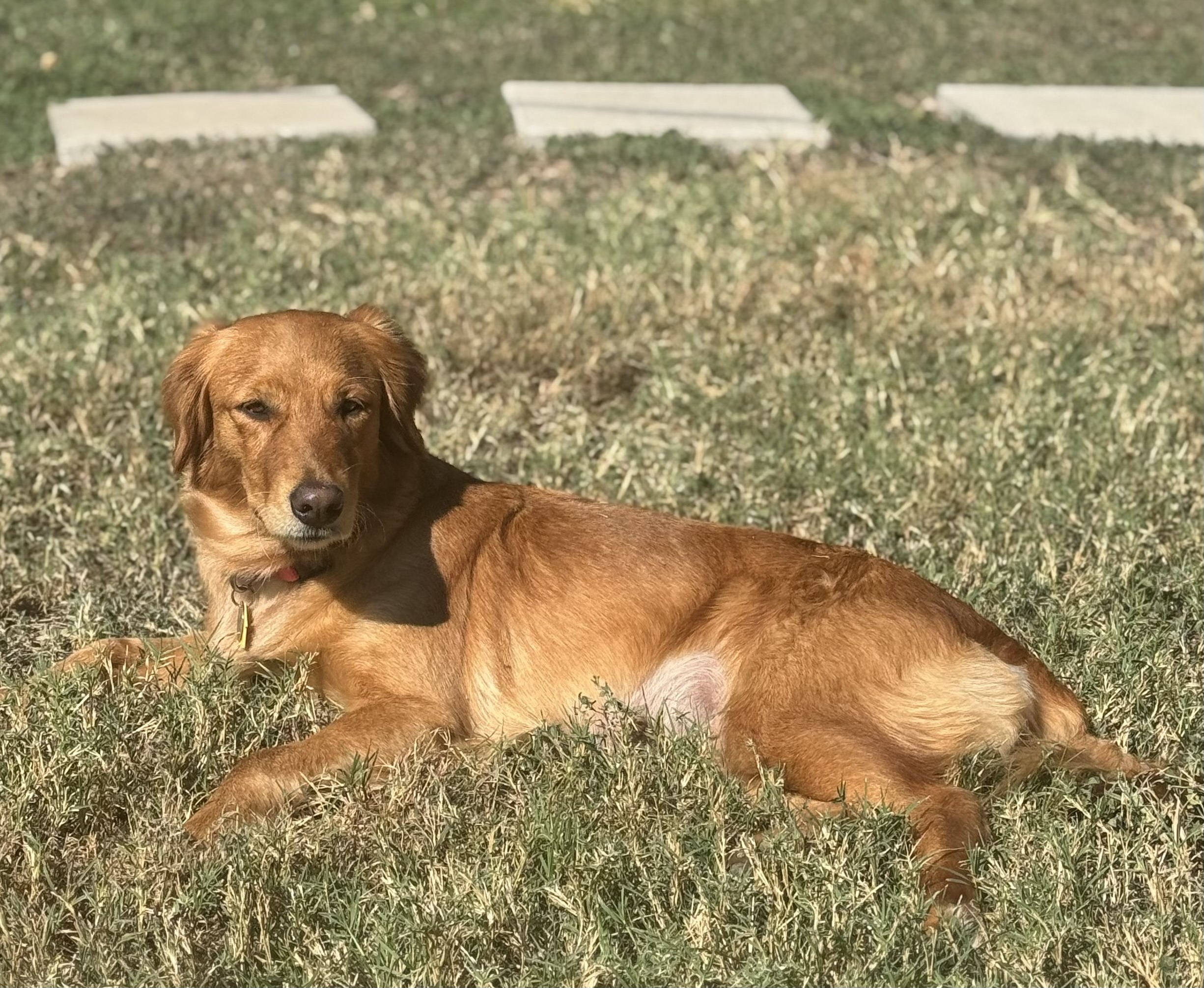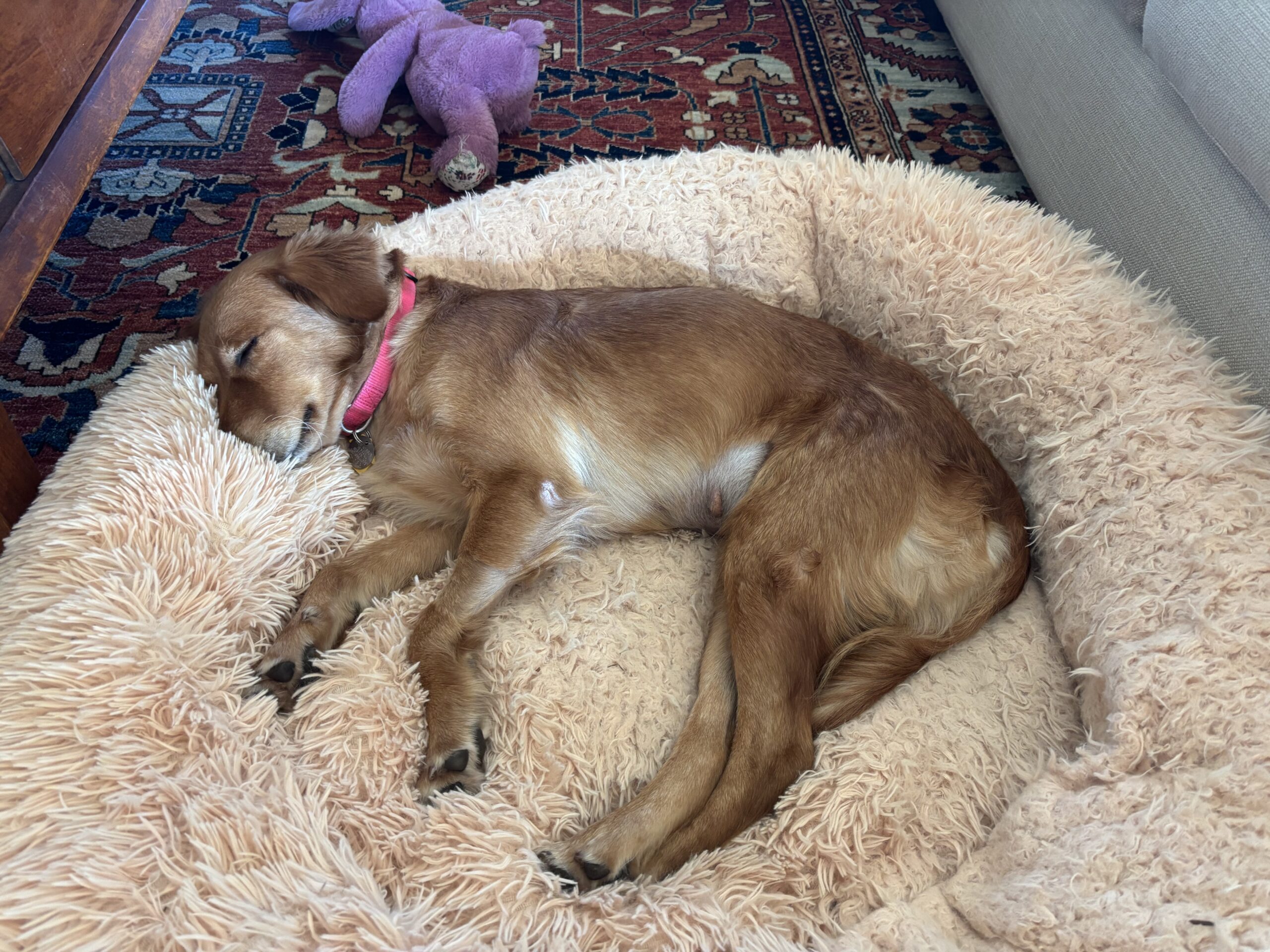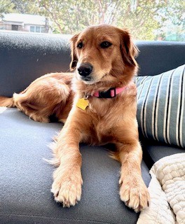 Nova is 1.5 years old, petite for a Golden Retriever, and the definition of sweetness wrapped in golden fur. She’s a little shadow, happily following her people from room to room, always ready to curl up nearby—whether you’re reading in the TV room or just moving about the house. Wherever you are, that’s where she wants to be.